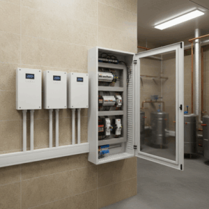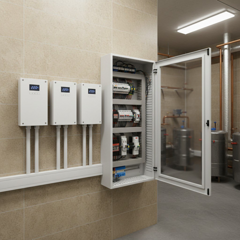 · Для всего дома вводной: Ставится после счетчика. Обычно монтируется на стену в коридоре или щитке. Требует много места.